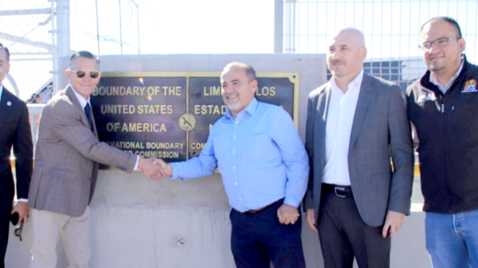 Acompañando a autoridades de Presidio, Tex., y al representante del Distrito 74 Eddie Morales Jr. (Dirección de Comunicación Social Mpal.).