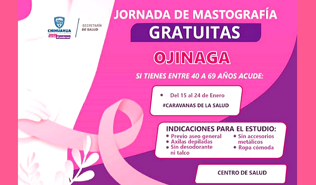 Por medio de Presidencia Municipal de Ojinaga y DIF Municipal Ojinaga 2021-2024 en conjunto con la Secretaría de Salud Chihuahua, tendremos el servicio en nuestro municipio de estudios de mastografía totalmente gratis. Estaremos atendiendo desde […]
